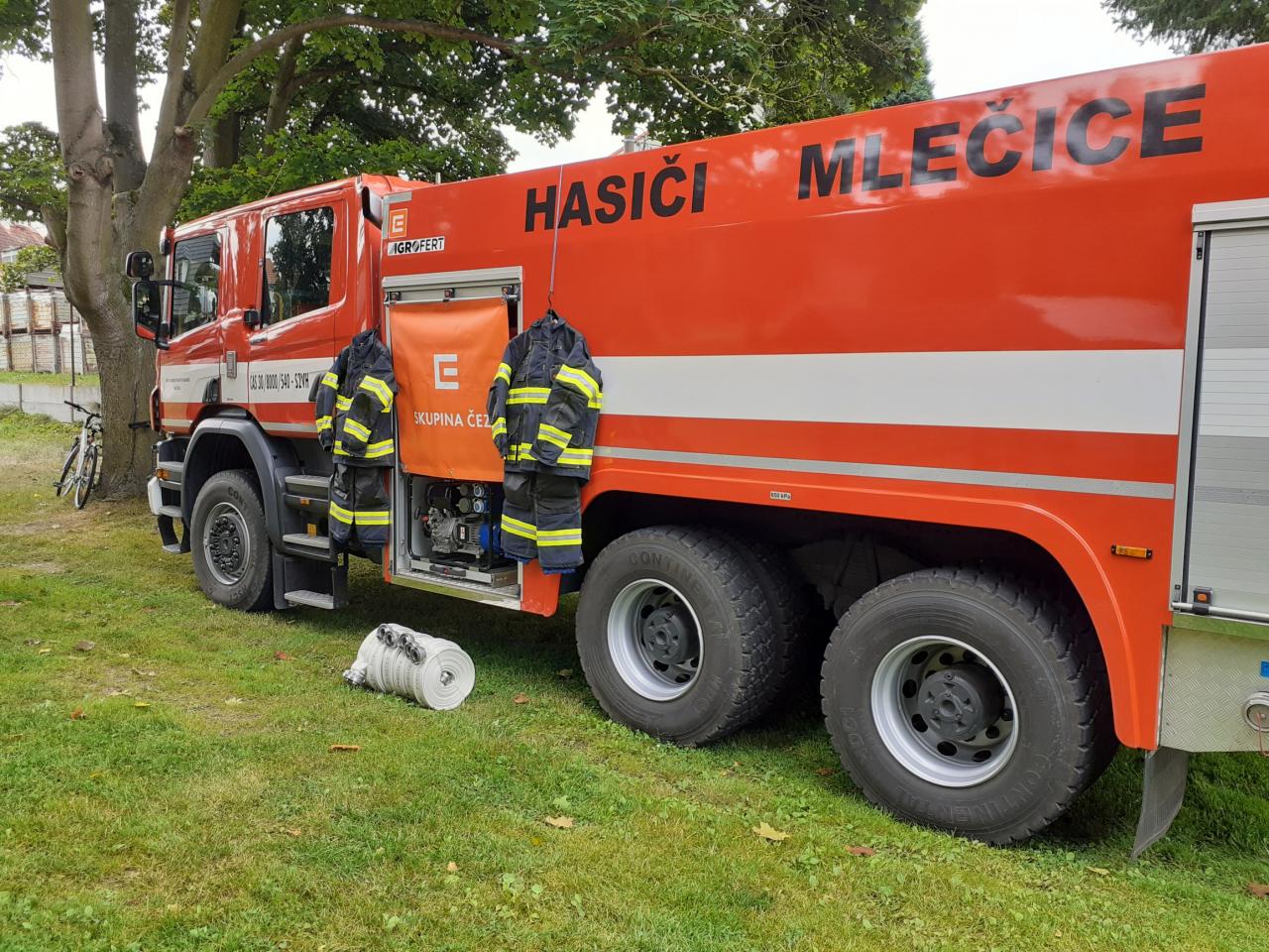 Velké poděkování Nadaci ČEZ za jejich podporu v rámci grantu Podpora regionů. Díky finanční podpoře Nadace ČEZ ve výši 70 tisíc korun jsme mohli pro naši výjezdovou jednotku JSDH III Mlečice zakoupit potřebné vybavení – 4ks zásahových obleků a 6ks zásahových hadic. Poděkování a prezentace zakoupeného vybavení proběhla dne 11. 9. 2021 v rámci 14. ročníku „Turnaje v nohejbale“ za přítomnosti zástupkyně Nadace ČEZ paní Ing. Vladimíry Rosendorfové. Nadaci ČEZ při prezentaci zakoupeného vybavení poděkoval za všechny starosta SDH Jaroslav Svejkovský a velitel JSDH Pavel Smola.