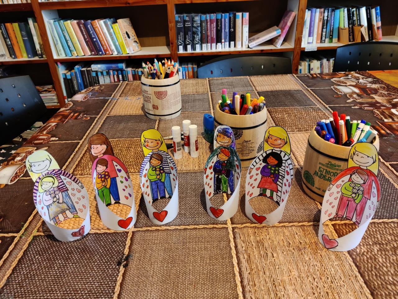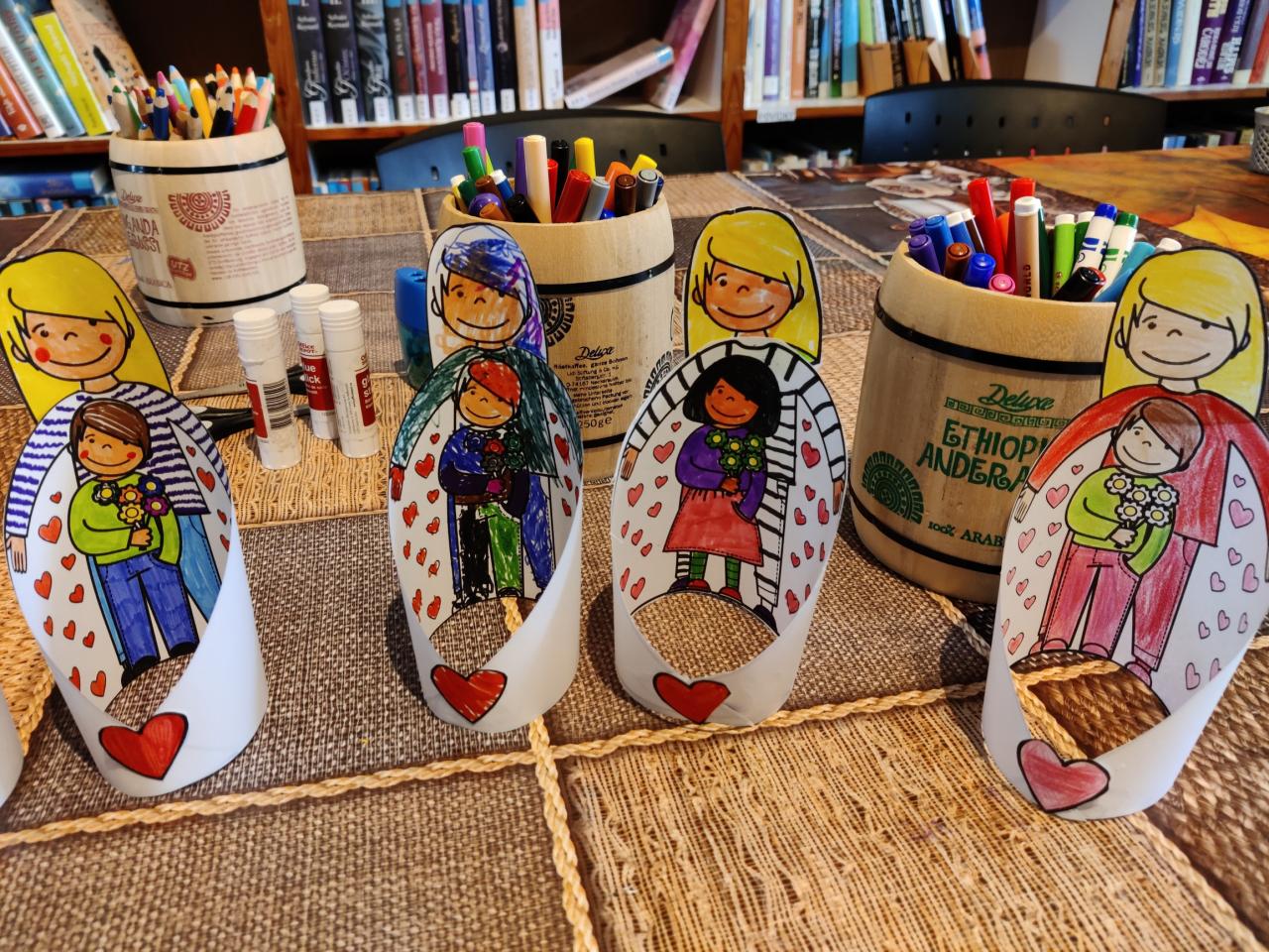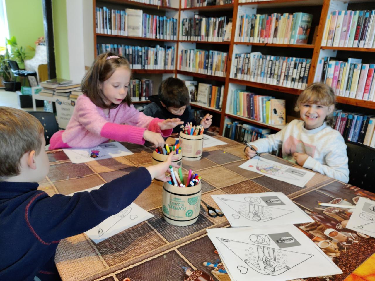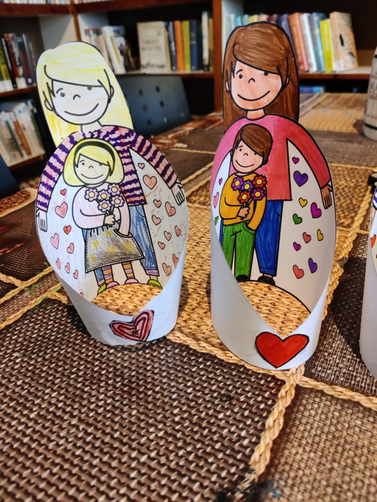 Před Dnem matek, konaným 14. 5. v hasičárně ve Mlečicích, se v knihovně vyráběla výzdoba na stůl. Děti z kroužku vybarvovaly a vystřihovaly postavičky, které se v závěru slepily.